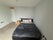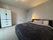The room is bright and spacious, with a comfortable double bed and plenty of floor space, making it ideal for someone working from home or wanting a comfortable place to relax. The flat itself has a large open-plan kitchen and living area, with floor-to-ceiling windows that bring in lots of natural light and give impressive city views.