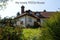 The house has a large garden and acre on a hill with lovely views over the town and woodlands .