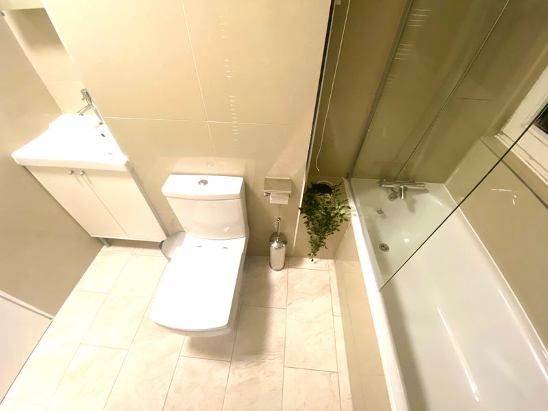 Monthly bills include water, electricity, gas, council tax, weekly cleaning service and high-speed broadband, all for £75 per month.