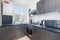 Kitchen with sink, gas stove, washing machine, boiler and storage cabinet