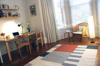 THE WHITE ROOM is in Hackney, London E5 (Zone 2), on the ground floor of our home, once a Victorian merchant’s villa. This well proportioned BEDROOM offers a generous living space with Habitat king-size bed, large table, three-metre high ceilings, original polished wood floors, ample storage and bay windows to the street. A SEPARATE PRIVATE SHOWER/TOILET is on a half-landing. The west-facing ground floor room is exceptionally light. Also included is the use of a SHARED KITCHEN (one other user) with fridge, microwave, hotplate, toaster, washer/dryer and ironing facilities, plus access to a rear ROOF TERRACE for dining and relaxing. This is shared with the owners and all occupants of the house and offers views of mature gardens and the Lea Valley in the heart of East London. Heating, electricity, council tax, water, broadband wi-fi and in the cost of the room. Single person preferred.