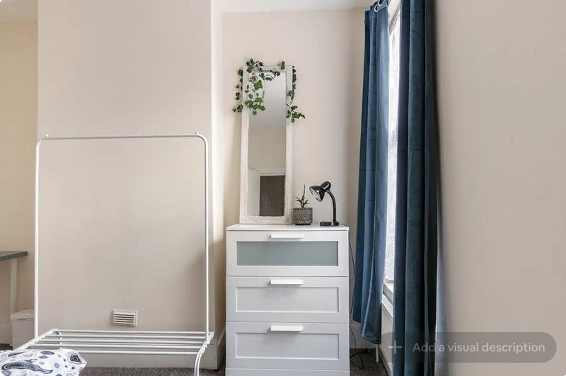 THE ROOM has a clothes rail and a chest of drawers and a desk. The sun hits the back of the house facing the room so there's plenty of natural light during the day and quiteness at night.