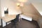 All rooms are furnished with a double bed, a desk, a chair, and fitted wardrobes.
