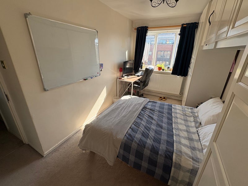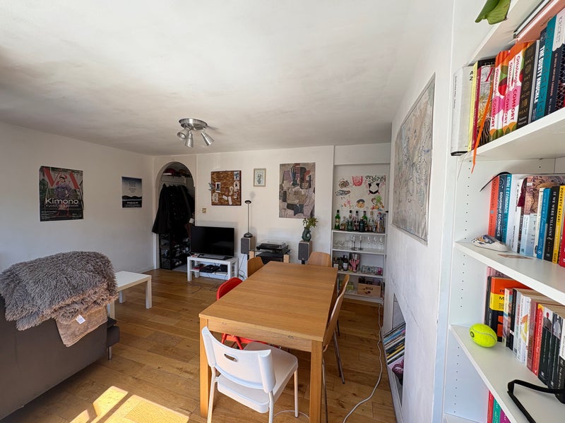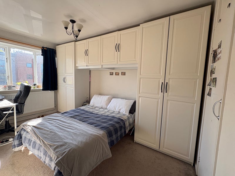 It’s in a quiet area within equal distance (10 mins) to Caledonian Road, Tufnell Park and Kentish Town stations. The flat has a sunny living room, kitchen, balcony, bathroom and a toilet downstairs who you will be sharing with 2 other girls. You will have your own shelf in the fridge, and kitchen cupboard; you’re also welcome to store books on the bookshelves in the living room, in addition to the many storage cupboard in the bedroom!
