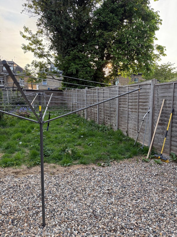 Large back garden for drying clothes.