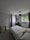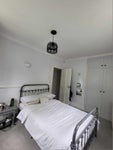 Furnished with double bed, desk, chair, bedside table, and large built in wardrobe