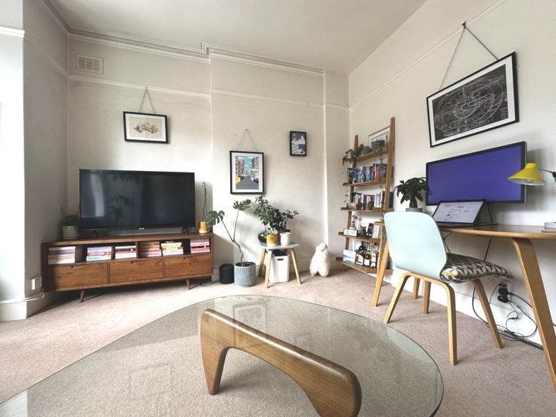 The flat is a well laid out first floor Victorian conversion on a wide, sunny street, the living room has large new double glazed wooden windows, and features a super comfortable sofa, big Samsung TV, a Noguchi-style coffee table and plenty of plants (that need watering!)...