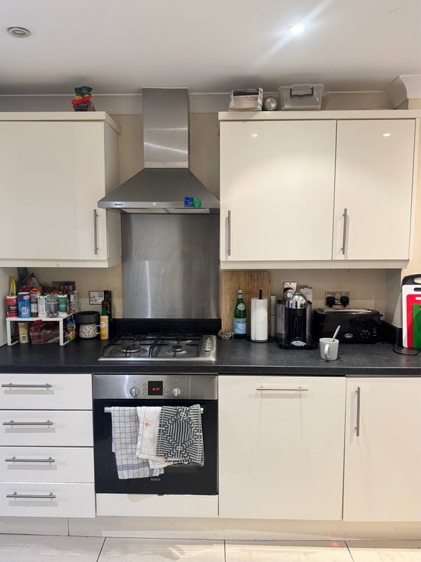 Large living space, cosy kitchen with integrated washing machine, fridge and dishwasher. Plus we bought an additional fridge for more freezer space. A spare downstairs toilet great for guests and a good sized Garden! Also a Parking spot with the property (if you wanted sole use it would be approx £100 a month but occasional use is fine as we rent it out to make money for house supplies)