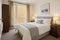 A fully furnished double room available in a luxury 4-bed apartment just 5 mins from Canary Wharf station. The room includes a bed, wardrobe, chest of drawers, bedside table, and a lockable door for privacy. Dock views and carpet flooring.