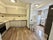 Large kitchen with a dining area and a hallway for added convenience.