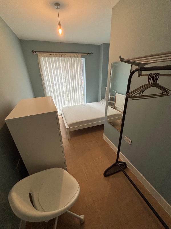 The room has a large window, wardrobe and a bookcase. Ideal for one person.