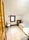 A uniquely shaped double room with everything you need, featuring two large windows that flood the space with natural light and a tall storage cupboard for added convenience.