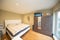 - Two bedrooms. Room 1 is an en-suite bedroom with a bathroom including a bath, a king-size bed (huge!), a desk, a chair, a wardrobe, a laundry drying rack and a whiteboard. Room 2 is a spacious loft with an en-suite bathroom, a double bed, a wardrobe, lots of shelves and room dividers.