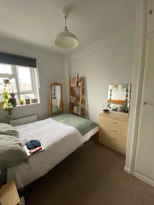 The available room is the smallest in the flat, located near the living room and kitchen. It is east facing next to the road so does come with a bit of noise. It comes furnished with a bed, chest of drawers and a wardrobe. There isn’t really space for a desk so ideal for someone who doesn’t need to WFH.