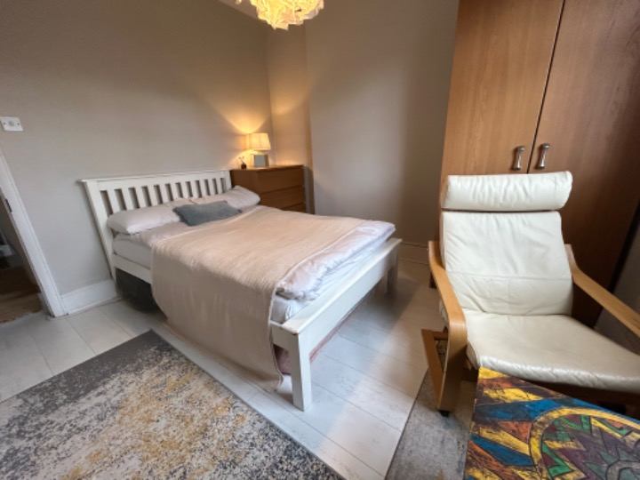 The space comprises of a double bedroom, kitchen and bathroom (these rooms are for your sole use, you do not share). The large bedroom is furnished and the kitchen is fully equipped, with washing machine, fridge, cooker, etc. The bathroom is large, modern and bright. Each room has plenty of natural light with the bedroom south facing onto the sunny back garden. Wooden floors throughout, a corridor leads between each of the three rooms.