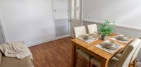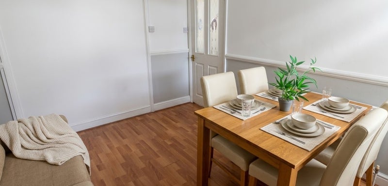 Kitchen: Fully equipped (oven, hob, microwave) with your own allocated cupboard and shared fridge/freezer space.