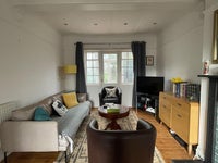 There are 2 furnished rooms with king-size beds available. Shared spaces include a living room, kitchen/dining room, a conservatory and a garden. There is one large family bathroom (separate shower and tub) and a second downstairs toilet.