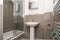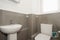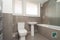 There are 2 bathrooms- 1 with a bath and built in shower and toilet and 1 is a shower room with ample storage. there is also a separate toilet downstairs.