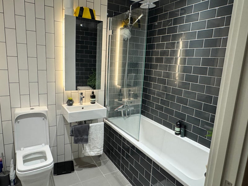 The flat features a bright, shared living and kitchen space, finished to a high standard. Residents also benefit from exclusive access to a private clubhouse, including a fully equipped gym, swimming pool, sauna, and steam room.