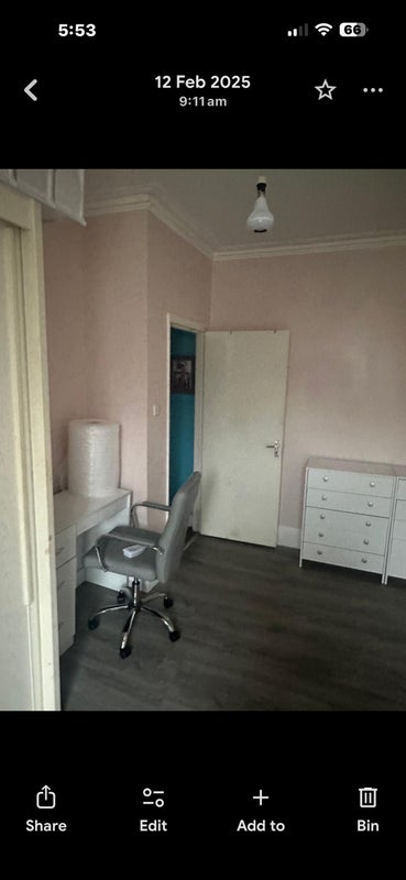Room: Large, bright, and semi-furnished (room comes with a big white walldrobe and work table and chair . Bed can be provided if needed – ideal for a single tenant.