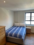 The room is spacious and furnished with a double bed, dresser, wardrobe + desk if your job is Flexi/ WFH. The kitchen/living room is open plan and very spacious with a balcony looking over a side road, which is gorgeous on sunny days. We also have access to a massive shared roof terrace which overlooks London.