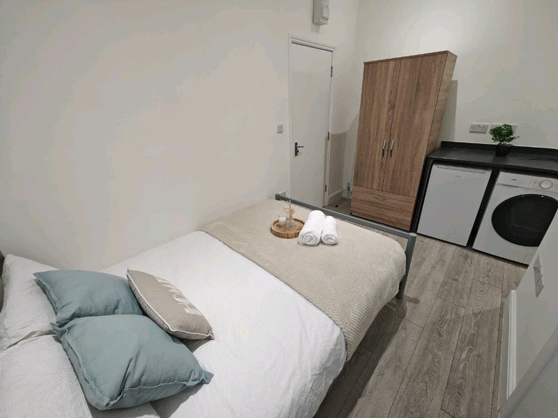 A modern, bright and spacious studio (ensuite room with kitchenette) has become available in a recently refurbished flat with a garden in a quiet residential street in Willesden Green.