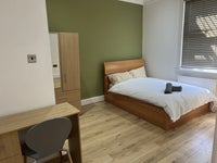 Large, spacious double bedroom with ensuite shower available in a 5 bedroom floor flat. The room comes fully furnished.