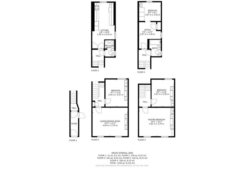 There are also two bathrooms (one shower and one shower and bath) with one located on the same floor as the bedroom.