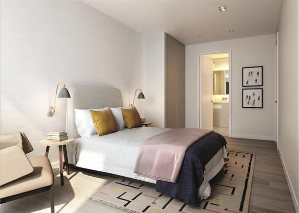This bright and spacious one-bedder features a modern open-plan kitchen and living area with high-spec integrated appliances, floor-to-ceiling windows, and elegant finishes throughout. The generously sized double bedroom includes fitted wardrobes, complemented by a sleek, fully tiled bathroom designed to a premium standard.