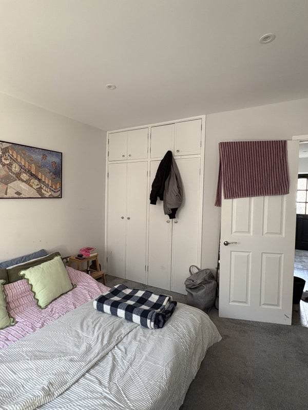 The bedroom is UNFURNISHED, super light and airy with double windows and a large built-in wardrobe with plenty of storage. The room is unfurnished but comfortably fits a king-size bed (as shown in photos) plus additional furniture — perfect if you’d like to make it your own!