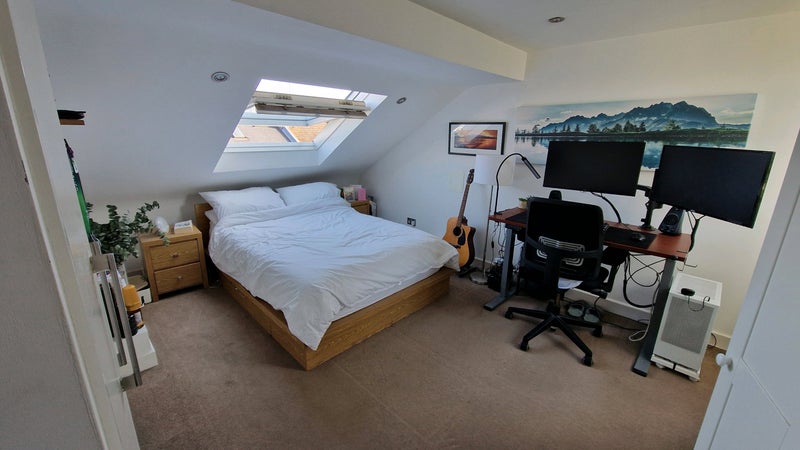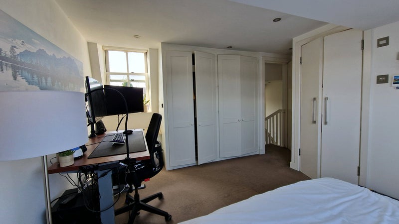 The room easily accommodates a double bed and additional furniture, with plenty of space to set up a desk, ideal for working from home. The layout offers flexibility while still feeling cosy and welcoming.