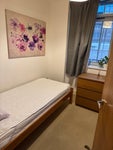A bright and comfortable single bedroom with private en-suite bathroom (with bathtub) available in a clean, modern flat in Stratford.