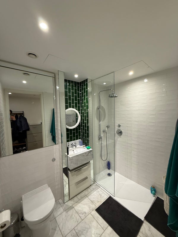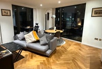 Double room with own bathroom in modern apartment at 5th floor in Embassy Gardens. 5 minute walk from northern line, 10 min from Vauxhall and the power station, Battersea park.