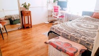 - shared kitchen and bathroom with bathtub/shower