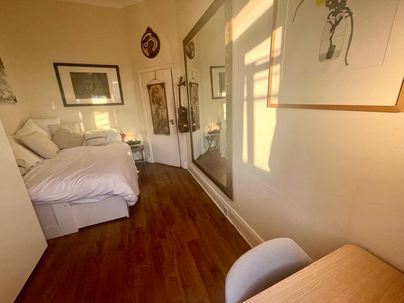There are 3 rooms in total here (one available to rent). Sadly there is no living room/lounge area- but we do have a rooftop area and small kitchen as a communal space. However, the tall ceilings and big windows make the flat feel spacious and give the space a lot of natural light, as well as so much character.