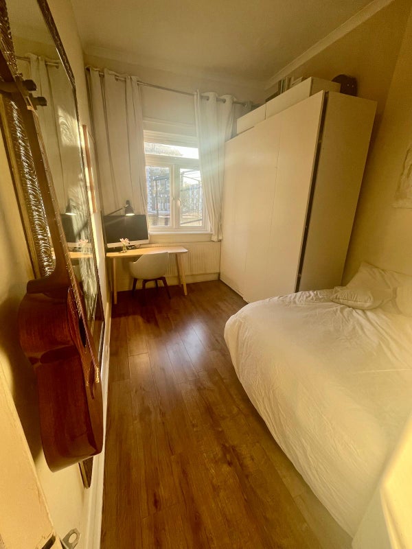 Your room faces out onto a busy road, with a fabulous roof top balcony space. it is central London so even with the double glazing the road can be pretty noisy so you might sleep better with ear plugs. Your Ikea bed is a double bed, but if you want more space in your room the bed can be slid into position to be a single to give you more floor space. If you have your own bed or mattress or other furniture - that is not a problem, we can chat about selling/getting rid of any current furniture you don't want. There is a big wardrobe and plenty of space ontop of the wardrobe for additional storage. Please note: the price advertised is for single occupant as that's our preference - but if you are a couple or someone with a pet and are happy to pay more towards bills etc. we will stay open minded. The most important thing is personality/fit and that we all feel good in and love our home.