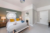 Aside from comfy king bed, comes furnished with double chest of drawers, additional chest, desk, in built wardrobe, and tub chair for relaxing.