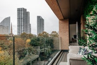 It’s a bright, modern flat on Lever Street, about 80 sqm, with an open-plan living space, floor-to-ceiling windows, and two balconies with amazing views over London. You can see The Shard and St Paul’s from the flat, and it also overlooks King’s Square Park, which makes it feel a lot calmer than most places this central.