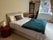 Spacious double bedroom in a well-maintained, gated apartment block with communal garden. The room has a hanging rail, drawer space, a desk and an office chair. The flat is large, clean and well equipped, with a modern kitchen including a dishwasher and washing machine. En-suite bathroom with bath, shower, toilet and basin. Wi-fi is available, and a cleaner visits the property every fortnight.