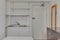 The room has a bed, storage and sink.