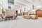 Open plan lounge/kitchen with washing machine, fridge freezer, oven.