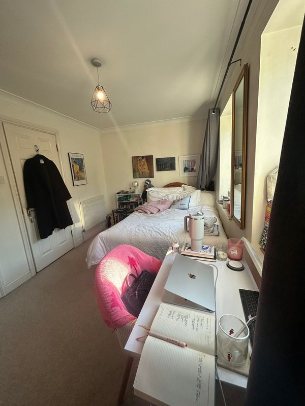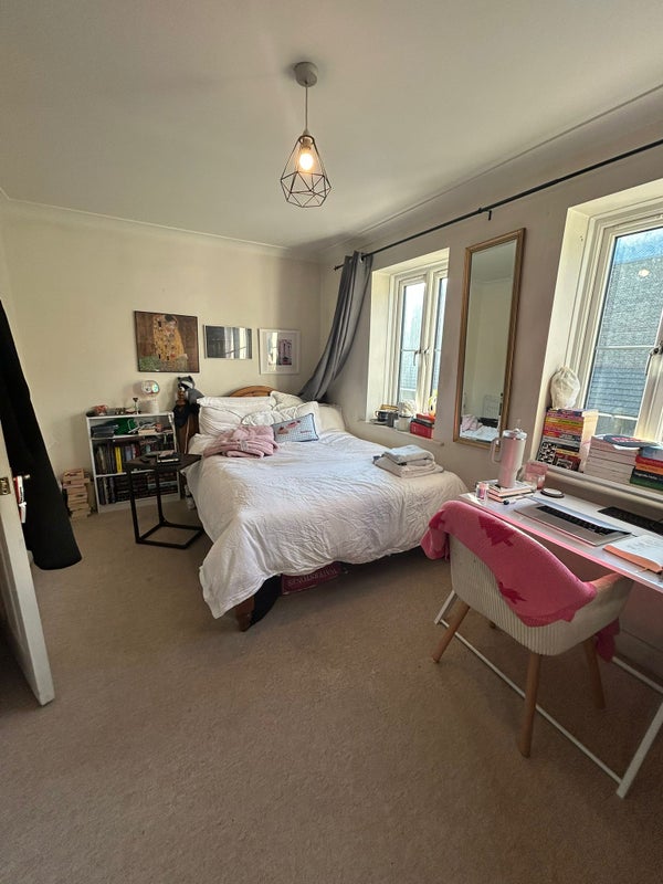 The room is on the 1st floor and comes with a double bed, dresser and large built-in wardrobe. Rent is £740 p/m + bills of around £120 (we're council tax band F).