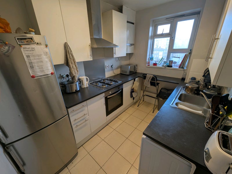 I've really enjoyed living in this flat, great for professionals. I'm leaving to move in with my partner. No shared living room in the flat, but there is a kitchen, bathroom, separate toilet. Three other housemates, all very lovely and responsible. Not a party flat, we're all busy but we get along. There is a weekly cleaning rota.