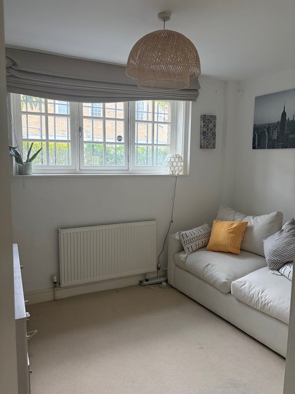 Looking for a short or long term lodger for my spare bedroom that can be furnished or partly furnished. Photos show what it currently is (super comfy sofa bed which can go) and open to discussions re your needs. Two toilets, shared shower on ground floor. Huge shared living room upstairs and we have another housemate, Iphy a beautiful friendly Persian cat. There is also a top floor terrace, a shared mews and parking with my house (which will need to be negotiated separately re price). It is a tidy, friendly, quiet household which will welcome the occasional debriefing chat but you can have your own space.