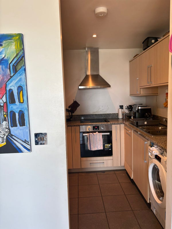 The room is in a 2-bedroom flat, to be shared with a single girl. The apartment is in a very large building, which also has a free gym for residents and a concierge from Monday to Friday (9-5).