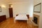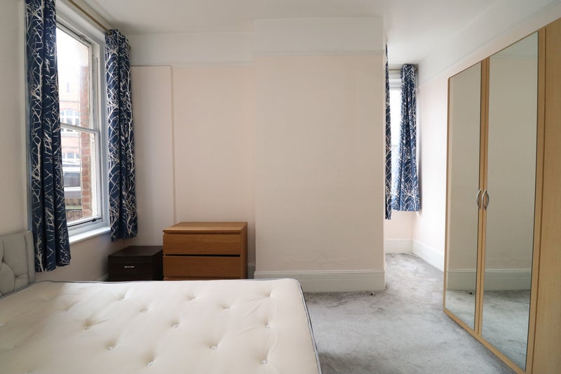 Comes fully furnished: double bed, wardrobe, chest of drawers, and desk