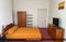 The room is a king-size bedroom in a spacious flat with high ceilings. The room comes furnished with a double bed, wardrobe, a large chest of drawers, desk and chair, and mini-sofa.