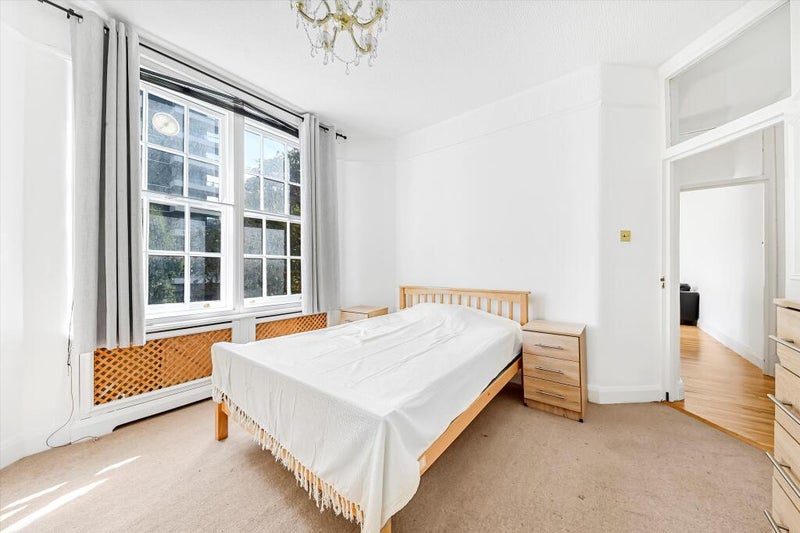 Spacious living/dining room, fitted kitchen, shared bathroom, plus a spare den for guests. The building has a porter, lift, communal gardens, and plenty of storage. Walking distance to Regent's Park, Maida Vale, and St John's Wood High Street. Half a mile to the Jubilee Line.