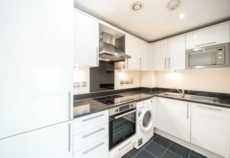 High-spec with gloss fittings, integrated appliances, and a washing machine.