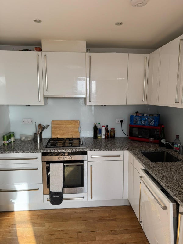 The flat itself is a three-bedroom apartment, with one en-suite and one shared bathroom, and wood laminate floors throughout.